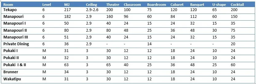 Tekapo is our largest conference room and is able to host up to 200 guests and features modern Audio Visual equipment and natural lighting with its floor to ceiling windows. Our professional team will be on hand to ensure the success of your event.
