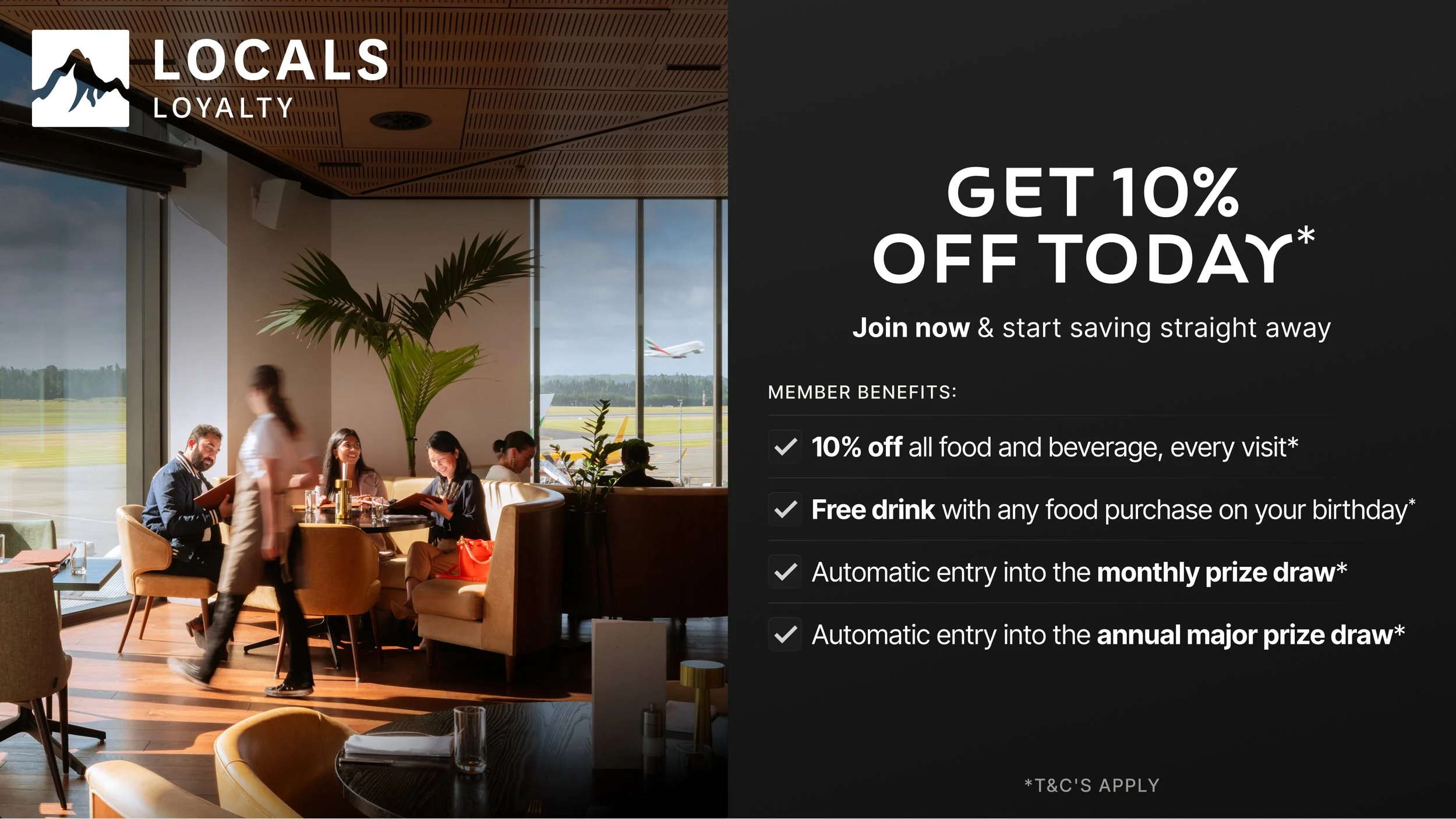 Subject to these Terms and Conditions, active members are entitled to the following benefits at Food Exchange Restaurant and Bar at Novotel Christchurch Airport: